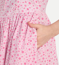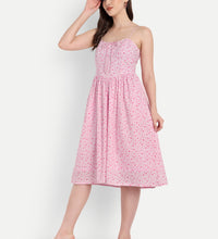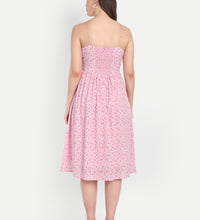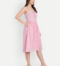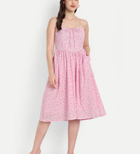 A playful drop-waisted dress crafted from breathable cotton fabric, featuring a tie-up bow at the back and knife pleats for...