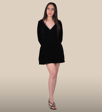 Make a graceful statement with this chic navy blue mini dress, thoughtfully crafted from breathable 100% cotton fabric. The model...