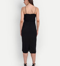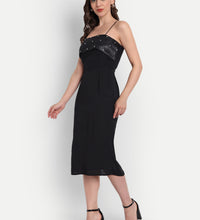 Effortlessly elegant, this black midi dress brings timeless charm with a hint of sparkle.