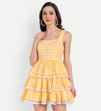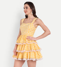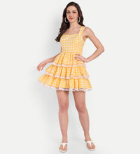 Charming sweetheart neckline dress with a layered bottom, crafted from 100% breathable cotton. Back smocking ensures comfort, with a concealed side zip. Fully lined and opaque, perfect for picnics or vacations.